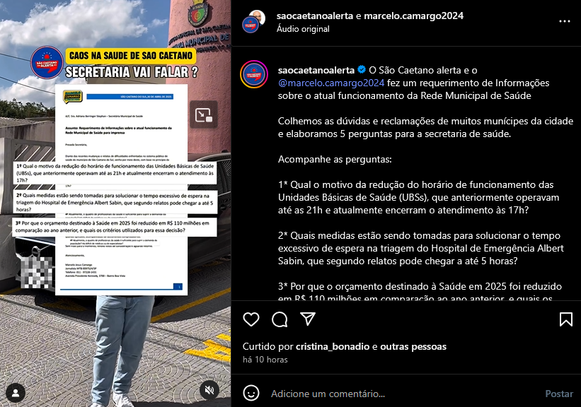 Veículo: Online -> Instagram -> Instagram São Caetano Alerta