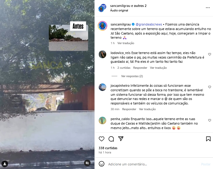 Após a denúncia sobre o terreno abandonado, começaram a limpeza hoje