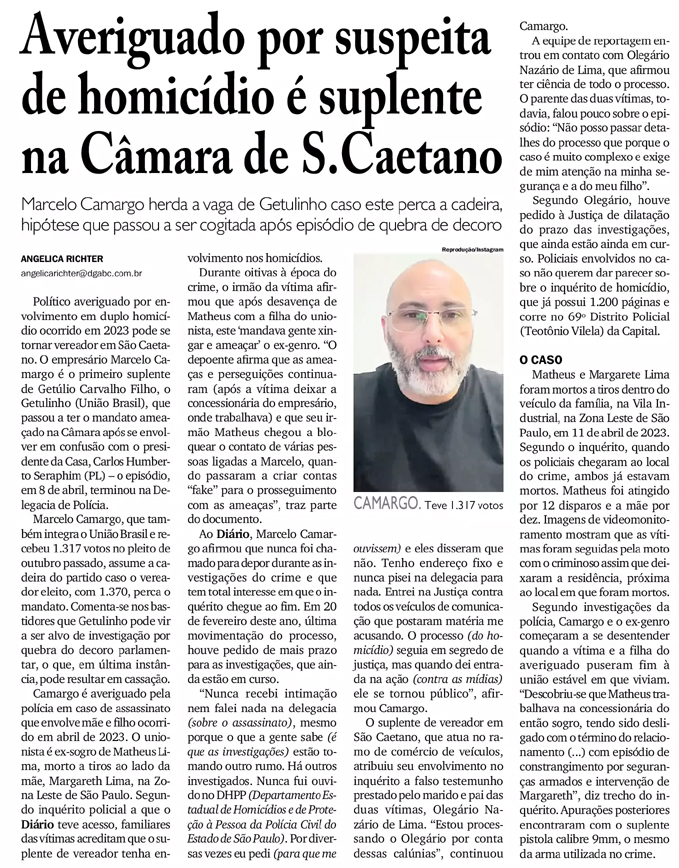 Averiguado por suspeita de homicídio é suplente na Câmara de S.Caetano
