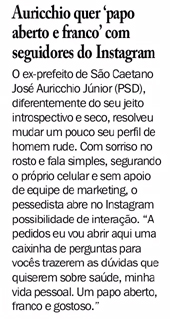 Auricchio quer 'papo aberto e franco' com seguidores do Instagram