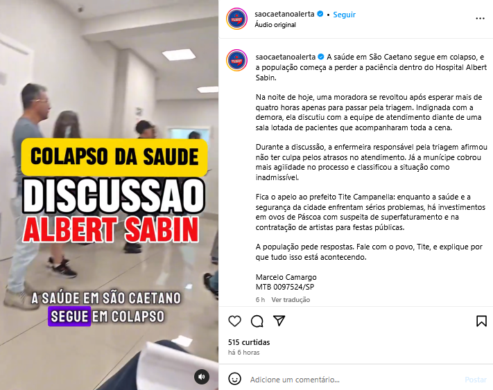 Veículo: Online -> Instagram -> Instagram São Caetano Alerta