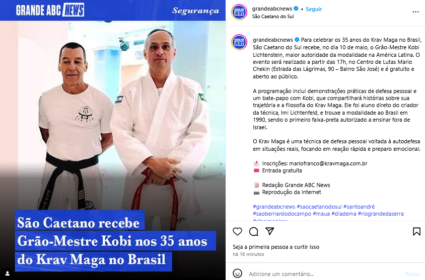 São Caetano recebe Grão-Mestre Kobi nos 35 anos do Krav Maga no Brasil