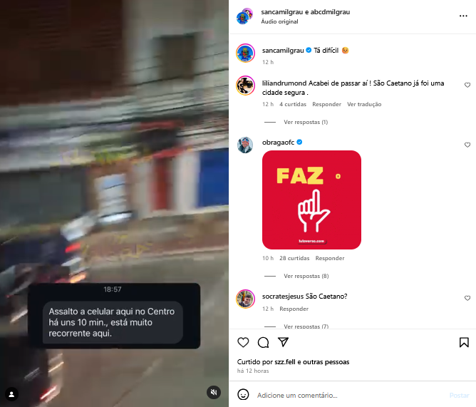 Veículo: Online -> Instagram -> Instagram Sanca Mil Grau