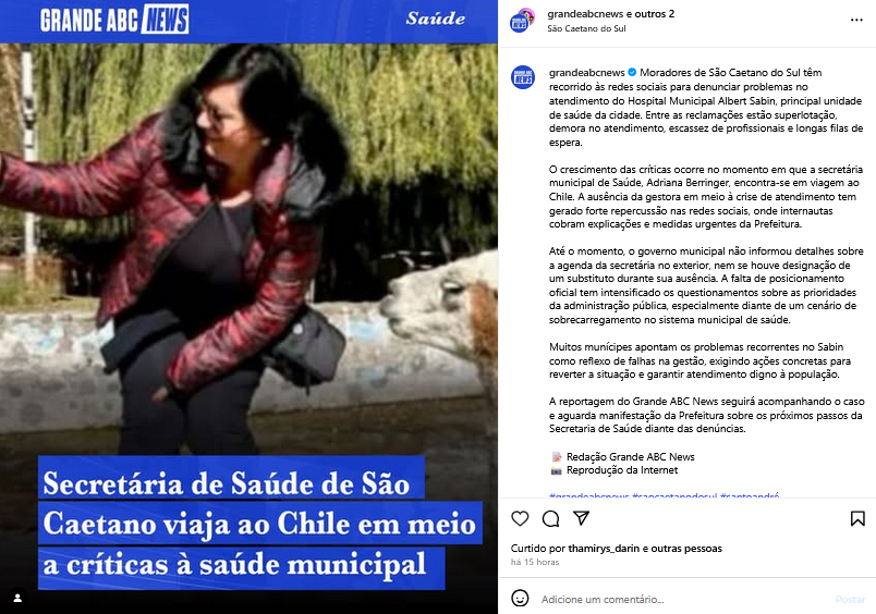 Secretária de Saúde de São Caetano viaja ao Chile em meio a críticas à saúde municipal