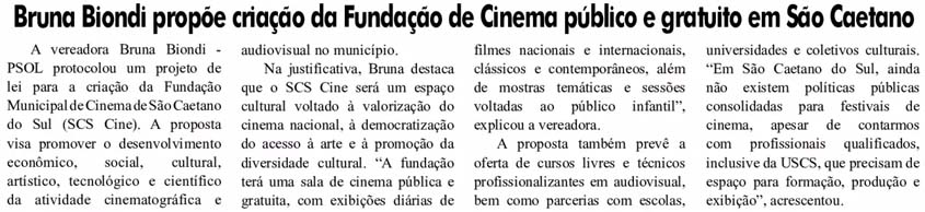 Bruna Biondi propõe criação da Fundação e Cinema público e gratuito em São Caetano