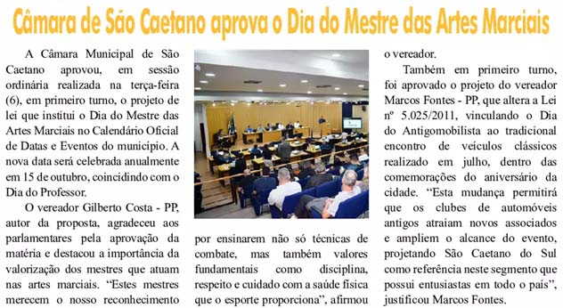Câmara de São Caetano aprova o Dia do Mestre das Artes Marciais