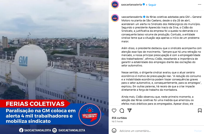 Veículo: Online -> Instagram -> Instagram São Caetano Alerta