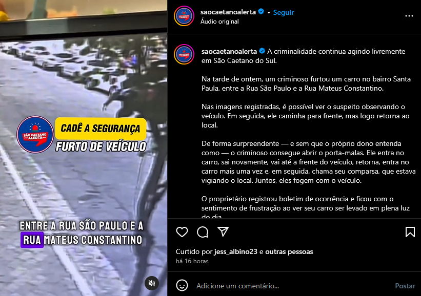 Veículo: Online -> Instagram -> Instagram São Caetano Alerta
