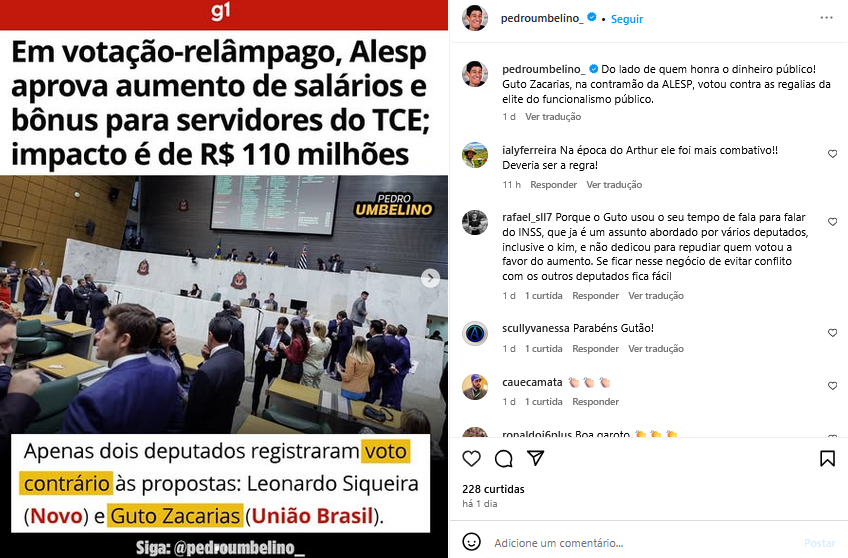 Veículo: Online -> Instagram -> Instagram Pedro Umbelino