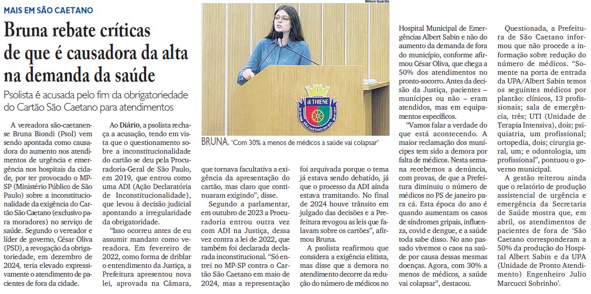 Bruna rebate críticas de que é causadora da alta na demanda da saúde