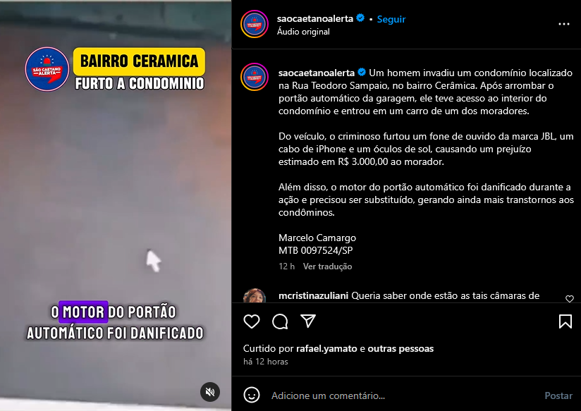 Veículo: Online -> Instagram -> Instagram São Caetano Alerta