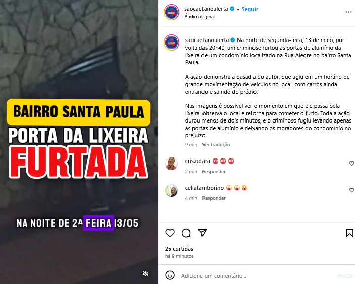 Veículo: Online -> Instagram -> Instagram São Caetano Alerta