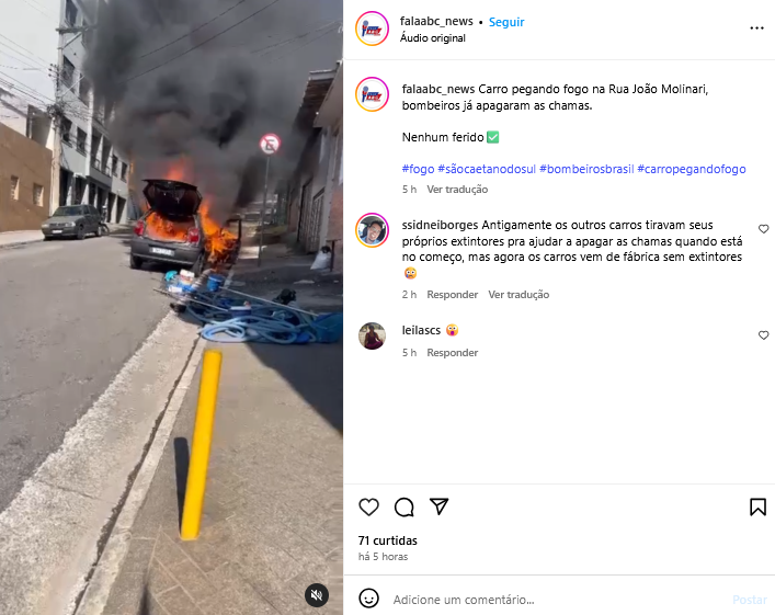 Carro pegando fogo na Rua João Molinari