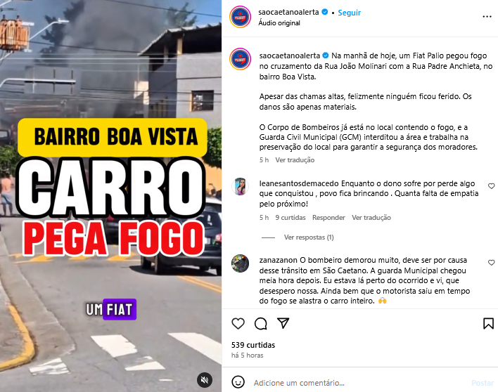 Veículo: Online -> Instagram -> Instagram São Caetano Alerta