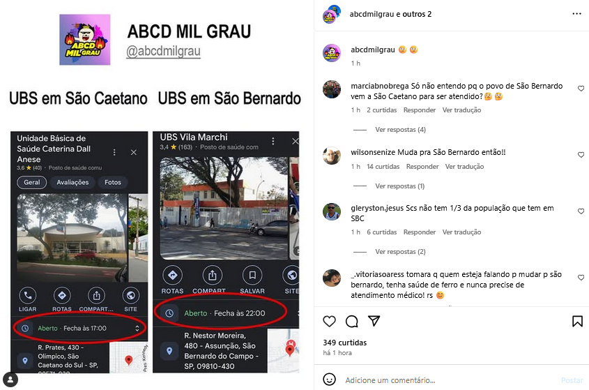 Diferença nos horários de funcionamento das UBS de São Caetano e São Bernardo