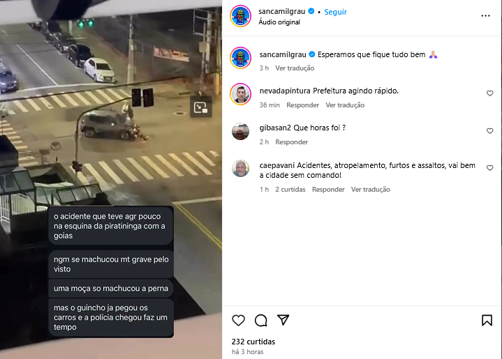 Veículo: Online -> Instagram -> Instagram Sanca Mil Grau