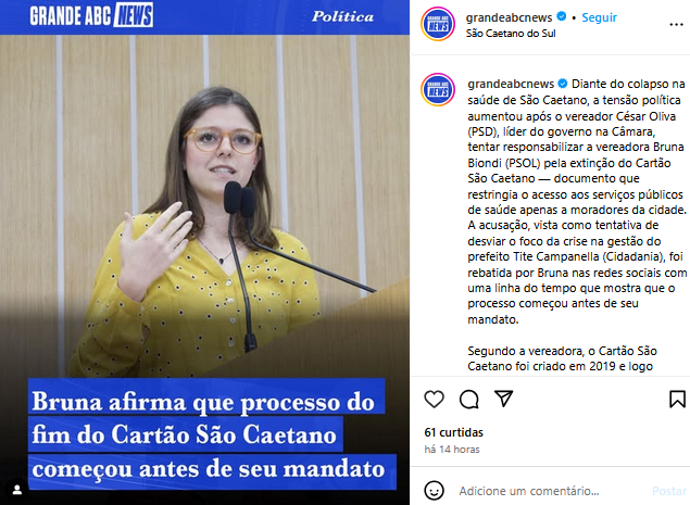 Veículo: Online -> Instagram -> Instagram Grande ABC News