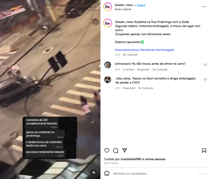 Veículo: Online -> Instagram -> Instagram Fala ABC