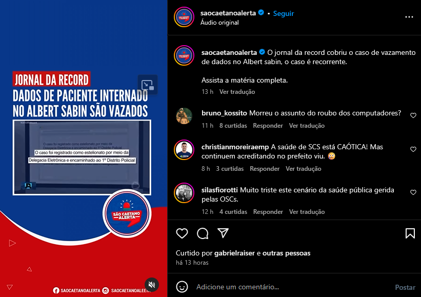Veículo: Online -> Instagram -> Instagram São Caetano Alerta