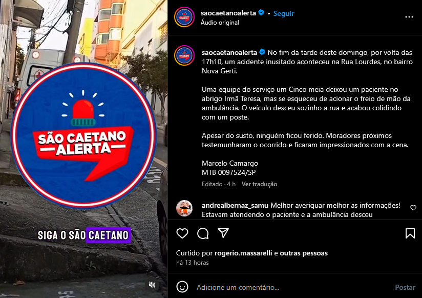 Veículo: Online -> Instagram -> Instagram São Caetano Alerta