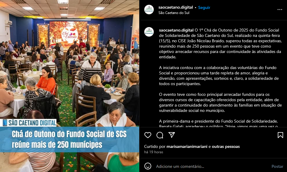 Veículo: Online -> Instagram -> Instagram São Caetano Digital