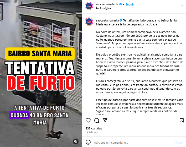 Veículo: Online -> Instagram -> Instagram São Caetano Alerta