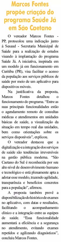 Marcos Fontes propõe criação do programa Saúde Já em São Caetano