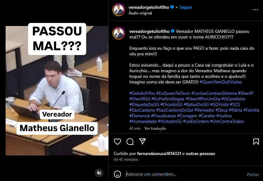 Veículo: Online -> Instagram -> Instagram Getúlio Filho