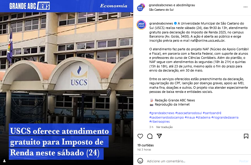 Veículo: Online -> Instagram -> Instagram Grande ABC News