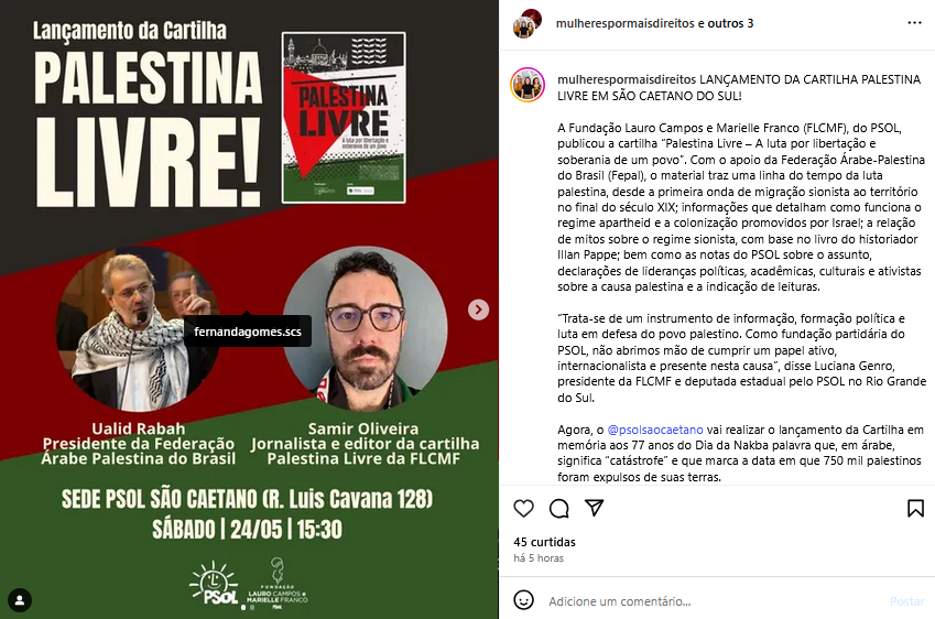 Lançamento da cartilha palestina livre em São Caetano do Sul