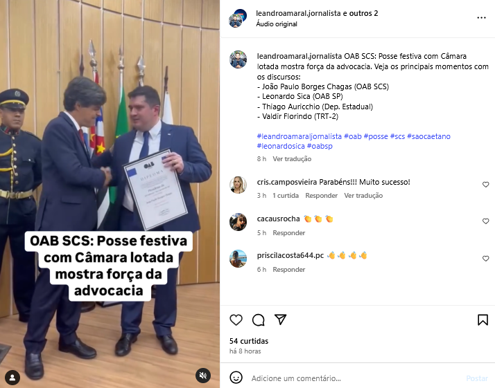 OAB SCS: Posse festiva com Câmara lotada mostra força da advocacia