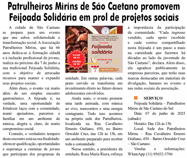 Patrulheiros Mirins de São Caetano promovem Feijoada Solidária em prol de projetos sociais
