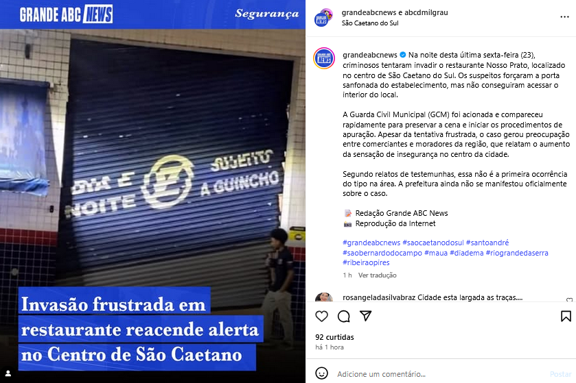 Veículo: Online -> Instagram -> Instagram Grande ABC News