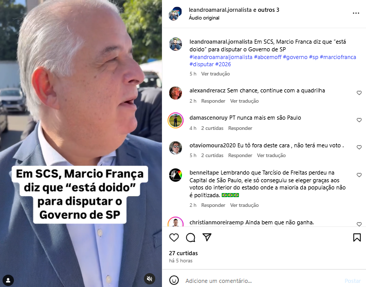 Em SCS, Marcio Franca diz que “está doido” para disputar o Governo de SP