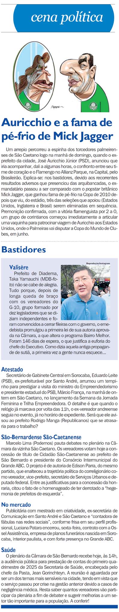 Coluna Cena Política - Auricchio e a fama de pé-frio de Mick Jagger