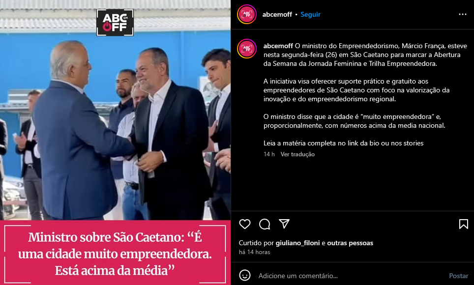Ministro sobre São Caetano: "É uma cidade muito empreendedora. Está acima da média"