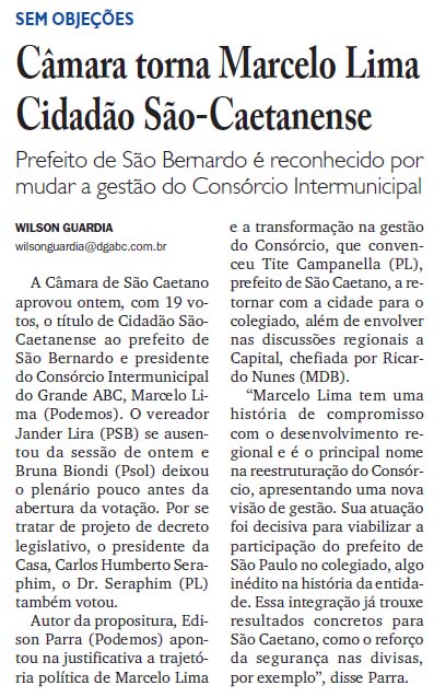 Câmara torna Marcelo Lima Cidadão São-Caetanense
