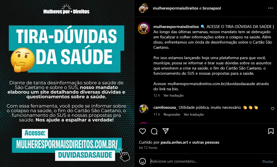 Veículo: Online -> Instagram -> Instagram Mulheres por Mais Direito