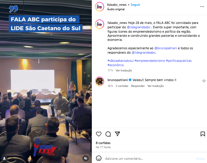 Veículo: Online -> Instagram -> Instagram Fala ABC