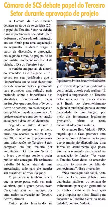 Câmara de SCS debate papel do Terceiro Setor durante aprovação de projeto