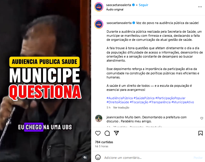 Veículo: Online -> Instagram -> Instagram São Caetano Alerta