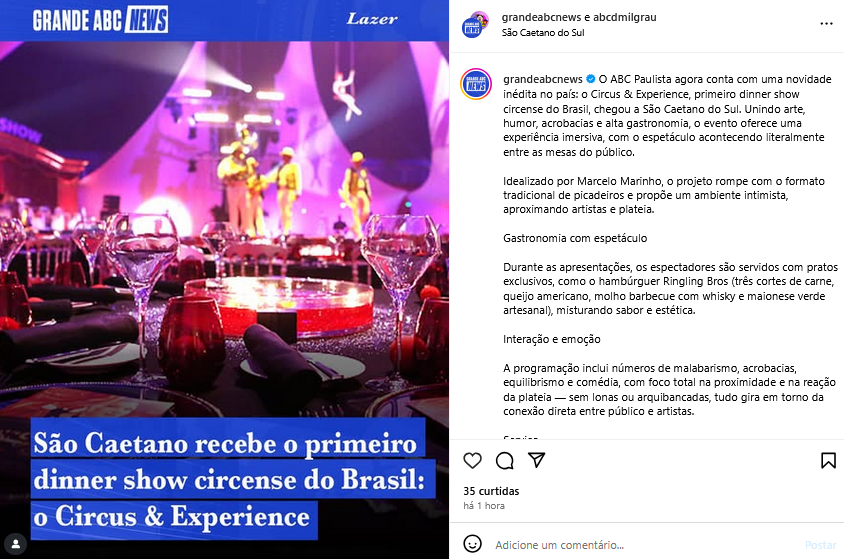 São Caetano recebe o primeiro dinner show circense do Brasil: o Circus & Experience