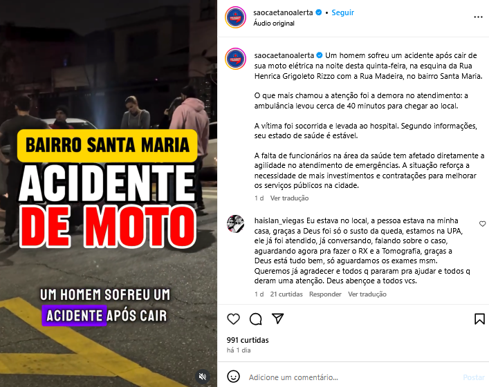 Veículo: Online -> Instagram -> Instagram São Caetano Alerta
