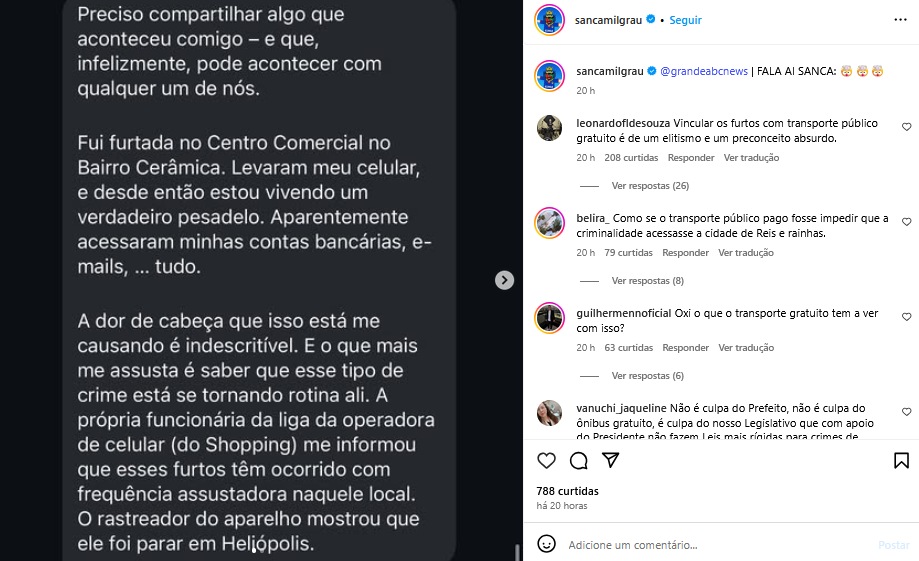 Veículo: Online -> Instagram -> Instagram Sanca Mil Grau