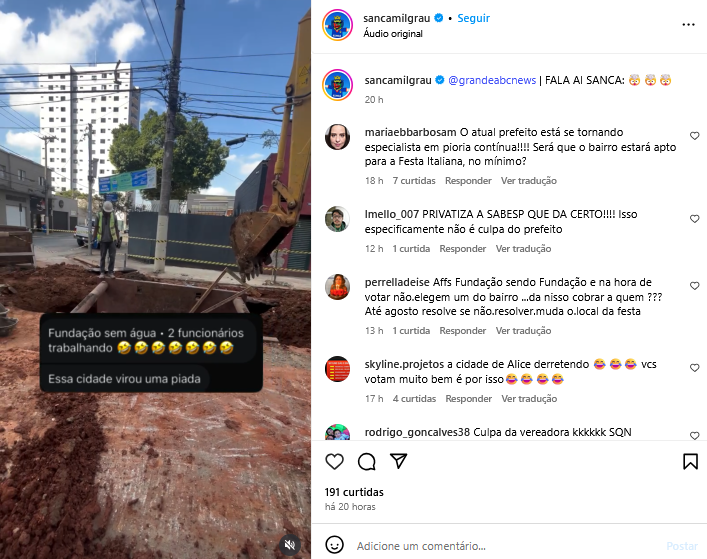 Veículo: Online -> Instagram -> Instagram Sanca Mil Grau