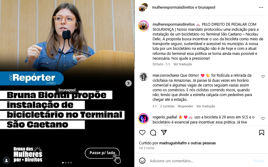 Bruna Biondi propõe instalação de bicicletário no Terminal São Caetano