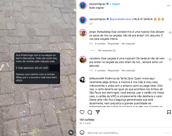 Veículo: Online -> Instagram -> Instagram Sanca Mil Grau