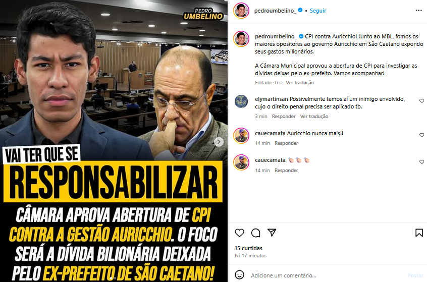 Veículo: Online -> Instagram -> Instagram Pedro Umbelino