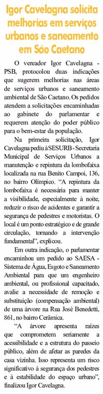 Igor Cavelagna solicita melhorias em serviços urbanos de saneamento em São Caetano