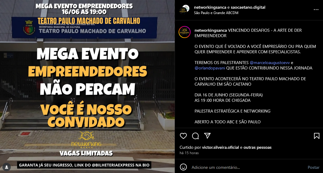 Veículo: Online -> Instagram -> Instagram São Caetano Digital